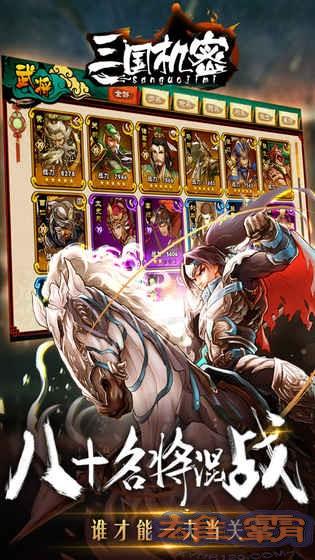 三国机密是一款三国攻略手游。游戏根据同名小说改编。游戏最大的亮点是精美的竖版绘画。三国时期关羽等名人的竖画都体现了他们鲜明的个性。快来下载吧!