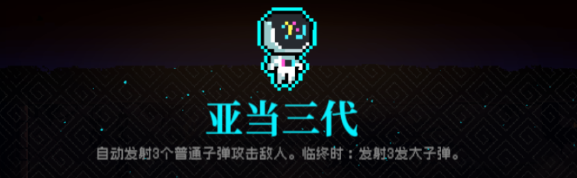 宠物效果:自动发射3颗普通子弹攻击敌人。临终时:射出三颗大子弹。